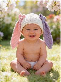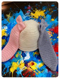 Modello con orecchie lunghe stile coniglietto, molto morbido e delicato sulla pelle del bambino.