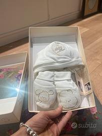 Cappellino e scarpine neonato in cotone biologico in confezione originale ,mai utilizzato ,nuovo .Costo nuovo 22 euro,ottimo per regalo ,consegba anche a mano