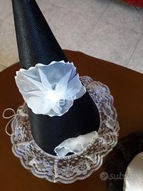cappelli a cono in cartone e rivistiti in raso con decorazioni in pizzo disponibili 2 neri 1 bianco € 2 cadauno se presi insieme € 5