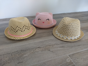Cappelli da sole per bambine . Utilizzati poco o quasi niente. Età come riportato in foto.