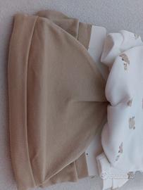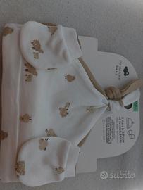 Set di 2 cappellini e 2 paia di guantini per neonato con simpatici disegni di pecorelle.