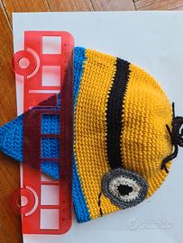 Cappellino fatto a mano a tema Minions, perfetto per i più piccoli (le misure dovrebbero essere 48x21). Realizzato a mano all'uncinetto.