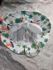 Cappellino alla pescatora per l'estate con cordicina sotto il mento. Taglia 3/6 mesi - 43/44 cm. Fantasia dinosauri