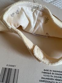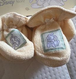Cappellino e scarpine coordinate per neonato della Disney Store. Colore giallo paglierino.