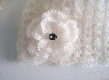 Cappellino neonata (1-4 mesi), realizzato a mano all'uncinetto in morbidissimo filato colore panna composto da 80% Kidmohair + 20% Polyamide, decorato con un delizioso fiorellino. Per qualsiasi informazione non esitate di contattarmi.