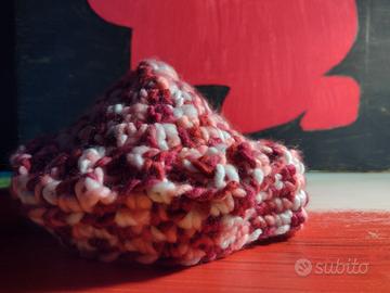 Le foto sono dimostrative, il berretto di lana all'uncinetto fatto rigorosamente a mano, il capellino in questione ha una circonferenza esterna di 46 cm.