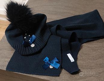 sciarpa e cappello da bambina di colore blu scuro in ottimo stato