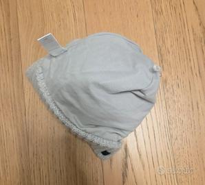Cappello in lana grigio con ponpon. Comodo e caldo.