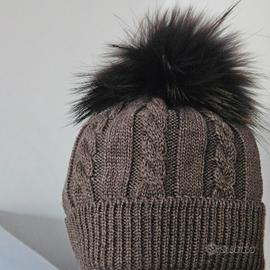cappello in lana con lavorazione a tracce e ponti pon di pelliccia Gio Higuamy. taglia I (6-12 mesi). colore marrone. indossato una sola volta pagato euro 69