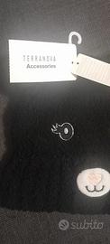 Cappello per bambini con orecchie a pom pon di un simpatico orsetto. Colore nero. Taglia S.