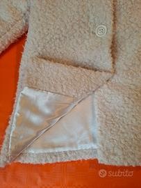 Cappotto da bambina marca Melby by F.lli Campagnolo, taglio classico, effetto agnellino, colore bianco panna, completamente foderato.