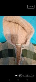 Cappottino neonata 18 mesi, taglia 84 cm, tessuto in lana color rosa cipria e grigio.