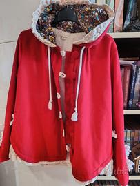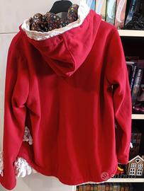 Cappottino ragazza rosso svasato, con cappuccio. Nuovo mai usato. Lavato una volta perché esposto in bancarella.