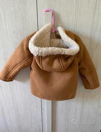 Caldo cappotto per bambina in morbido camoscio, presenta un'elegante finitura in pelliccia sintetica sul colletto. Perfette condizioni, usato due volte.