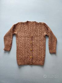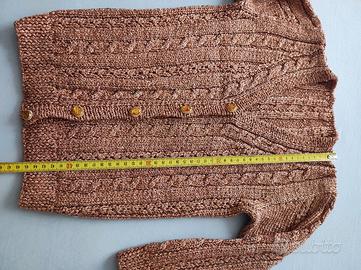 Cardigan bimba adatto per le feste perché color bronzo e inserti lurex, bottoni gioiello. Misure in foto