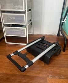 Carellino per zaino usato con diverse usure ma sempre funzionante. 28cm larghezza, 21cm profondità, 82cm lunghezza (estensione massima dalle rotelle)