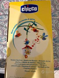 Carillon musicale Chicco per culla, con simpatici animaletti a forma di ape. -supporto regolabile -tira il fiore per ascoltare la melodia -dotato di scatola - Struttura in plastica colorata. - Bracci verdi con decorazioni floreali. - Animaletti in stoffa con ali colorate. Mai usato