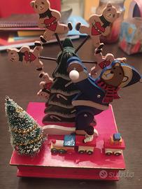 Carillon di Natale a molla albero con orsetto che gira la ruota, in legno,14*10*22 euro 5