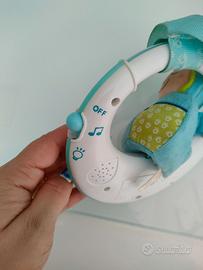 Ha una cinghia per attaccarlo al lettino o dove si vuole e 2 modalità di utilizzo: una con sola luce e una con luci e melodie di Mozart e Bach.