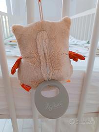 Carillon gufo, marca Sigikid con melodia della durata di circa 3 minuti. E' dotato di un laccetto che permette di fissarlo al passeggino, alla culla o al seggiolone. Il meccanismo si può rimuovere per il lavaggio.