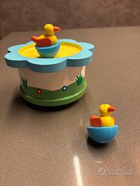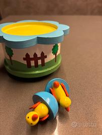 Grazioso carillon in legno, con decorazioni dipinte e paperette con calamita che si muovono. Perfetto per regalo o per la cameretta dei bimbi.