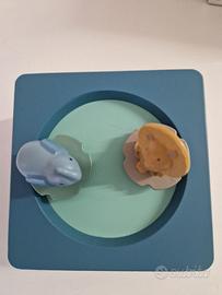 Carillon musicale con elefante e tigre che ballano al suono di una dolce melodia. Sous mon Baobab. Moulin Roty In confezione originale