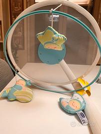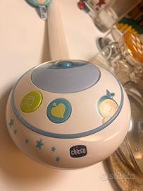 Giostrina Magie di Stelle Chicco, un carillon elettronico per culla progettato per favorire il riposo dei neonati, proiettando immagini rilassanti. Funziona con batterie