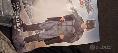 Carnevale BATMAN eccellenti condizioni formato da vestito completo di muscoli ed imbottiture mantello e maschera marca RUBIE'S linea DE LUXE taglia Large 7-8 anni 128 cm.