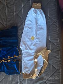 Vestito Aladin/arabo. Taglia cm 158. Pantalone bianco con fascia dorata sul fianco, gilet blue e sciarpa blue per fare il turbante