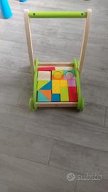 carrellino primi passi tutto in legno con costruzioni