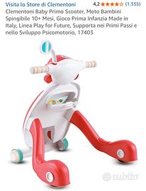 Clementoni Baby Primo Scooter, Moto Bambini Spingibile 10+ Mesi, Gioco Prima Infanzia Made in Italy, Linea Play for Future, Supporta nei Primi Passi e nello Sviluppo Psicomotorio, 17403