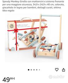 Meraviglioso giocattolo per i bambini che fanno i primi passi! Aiuta il tuo piccolo a stare in piedi e a correre e promuove la stabilità e le importanti capacità di equilibrio. I 27 blocchi colorati inclusi servono da peso per il carrello quando il bambino lo spinge e portano anche divertimento durante l'impilamento e la costruzione. Questo carrello è stato progettato con un sistema frenante per la sicurezza del tuo bambino. Speedy Monkey by NICI: giocattoli di alta qualità che soddisfano i più elevati standard di intrattenimento, istruzione e sicurezza. Speedy Monkey offre giocattoli premium che combinano design moderno con elementi tradizionali e sono stati accuratamente progettati per il loro valore giocoso, educativo e stimolante dello sviluppo.