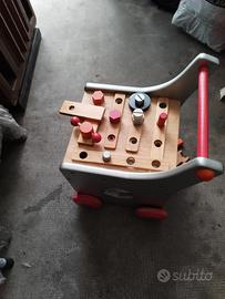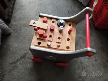 carrello in legno con 4 ruote e anche cucina di legno 40/60 e tanti giochi vari