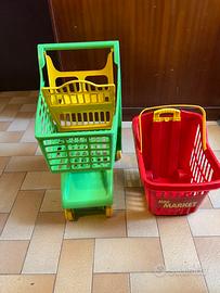 Vendo carrello della spesa e cestino spesa,usati ma in buono stato,possibilità di venderli insieme o separatamente. Preferibilmente consegna a mano.