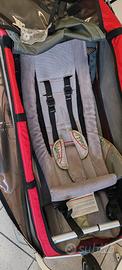 Carrello multifunzione Chariot cx utilizzabile per passeggiate, corsa, bicicletta. Completo di tutti gli accessori, compreso 2 attacchi per 2 biciclette. Chiavi chiusura di sicurezza, anti sole, anti pioggia, anti zanzare.
