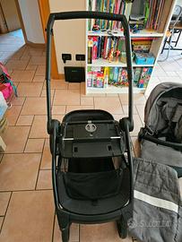 Carrello Fratellarre della Peg Perego composto da carrello, staffa per due agganci e seduta passeggino in versione grigio scuro.