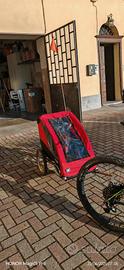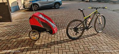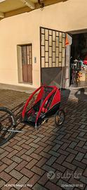 Carrello porta bambini per bicicletta, completamente smontabile, completo di ganci per bicicletta.