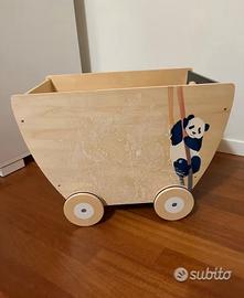 Vendo carrello porta giochi in legno, con maniglia perché il bimbo/a possa trainarlo e bellissimi disegni. Il carrello in vendita NON è questo in foto, è identico ma quello che vendo ha dei piccoli difetti sui dipinti e su alcune parti ma è NUOVO. Da nuovo costa € 90 vendo a € 30 per via di questi piccoli difetti che segnalo per correttezza.