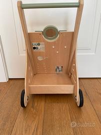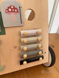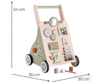 Carrello primi passi per bambini, in legno, molto più stabile rispetto a modelli più economici in plastica.si può inoltre regolare la vite sulle rotelle per definire la velocità con cui scorre il carrello.