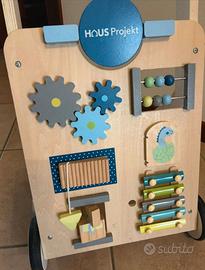 Carrello primi passi con giochini inclusi sulla testata (xilofono, piccolo abaco ecc.) marca Haus Projekt. Usato pochissimo, condizioni perfette come si vede in foto.