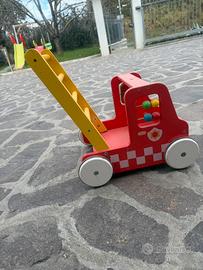Carrello primi passi per bambini, Camion dei pompieri, in legno, usato in buone condizioni (non sono presenti rotture