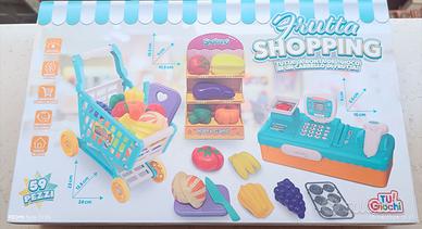 Set gioco Frutta Shopping per bambini, con carrello della spesa e accessori. - Include 59 pezzi tra frutta, verdura, cassa e accessori. - Stimola la creatività e il gioco di ruolo. - Adatto dai 3 anni in su.