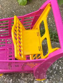 Carrello della spesa Giocattolo Plastica Colore fucsia giallo Misure cm h47 x41lunghezza xcm 27 larghezza Ottimo stato