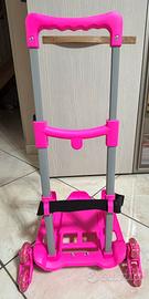 Carrello porta zaino originale Seven colore fucsia, robusto e resistente, e per adattarsi alle esigenze di tutti la barra estensibile arriva fino a 85 cm di altezza. Le 3 ruote per lato permettono un'agile salita e discesa dei gradini, e i pratici piedini frontali assicurano la stabilità del carrellino una volta fermo. Come potete vedere dalle foto è quasi nuovo ed è stato utilizzato pochissime volte. Vendo per mancato utilizzo .