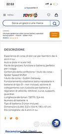 Include due macchinine, per giocare in due bambini insieme e sfidarsi. Gioco molto amato dai bimbi ma lho trovato non troppo scorrevole e pratico per bimbi piccoli. Consiglio d uso dai 4-5 anni.