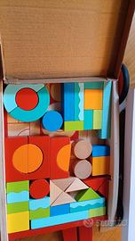 carretto con cubi (43 invece di 45). 2 persi durante apertura regalo più mdi usato. quindi materiale tutto nuovo. ancora in scatole e da montare