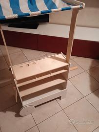 carretto in legno con ruote antiscivolo, vani portaoggetti. gioco per bambini bambine