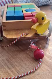 carretto in legno fine anni 70 originale. contenente forme il legno per gioco educativo 1-3 anni o come soprammobile e collezionismo
