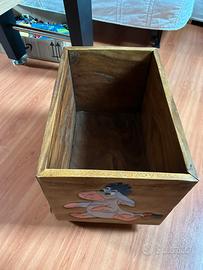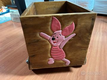 Causa inutilizzo vendo carretto porta giochi in legno, fatto artigianalmente, come da foto, con disegni dei personaggi di Winnie the Pooh (Winnie the Pooh, Pimpi, Tigro, Ih-Oh) sui lati.