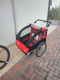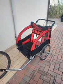 si può trainare con qualsiasi tipo di bici o montando la ruota anteriore si può usare da passeggino, ha pure un comodo bagagliaio posteriore per zaini o altro.
